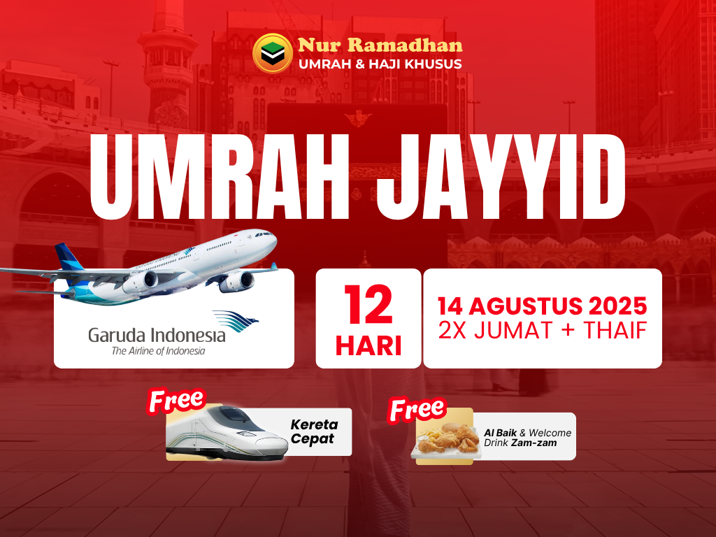14 Agustus 2025 (GA) - 12 HARI UMRAH STANDAR 2x JUMATAN FREE KERETA CEPAT + THAIF