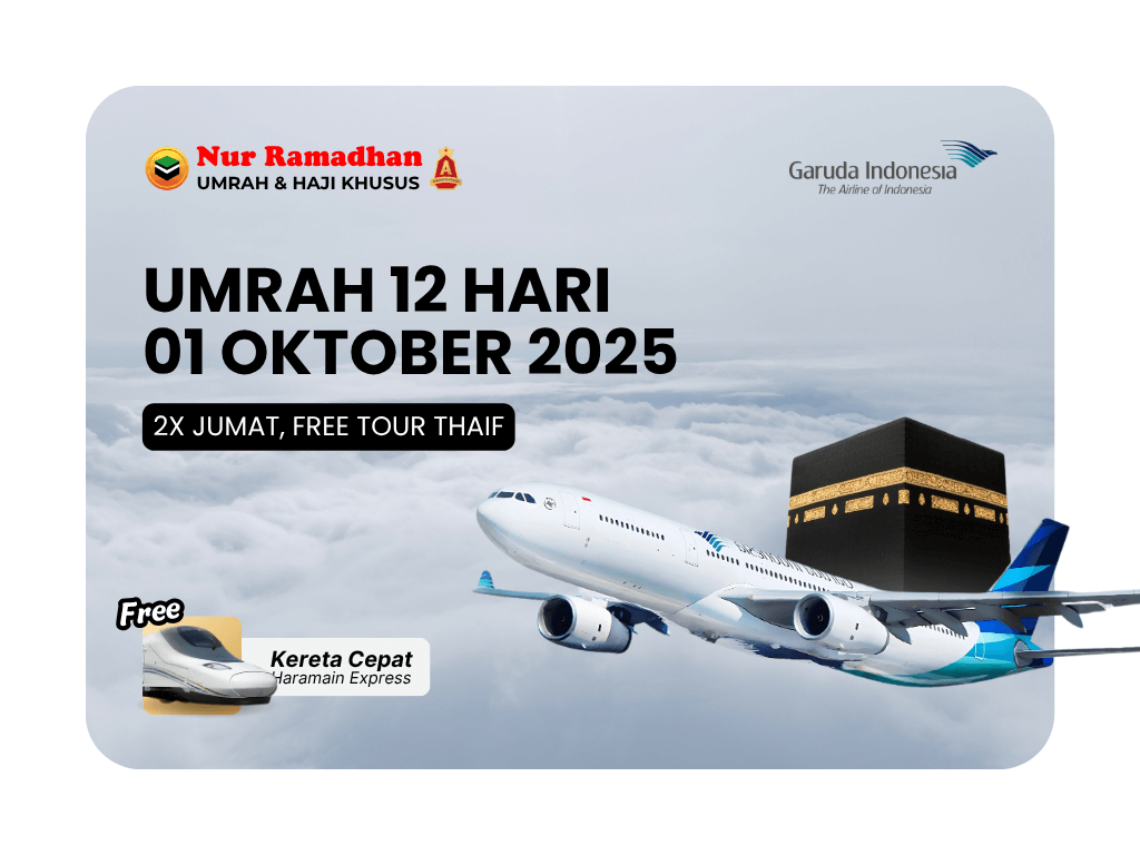 1 Oktober 2025 (GA) - 12 HARI UMRAH STANDAR 2x JUMATAN FREE KERETA CEPAT + KOPER KABIN
