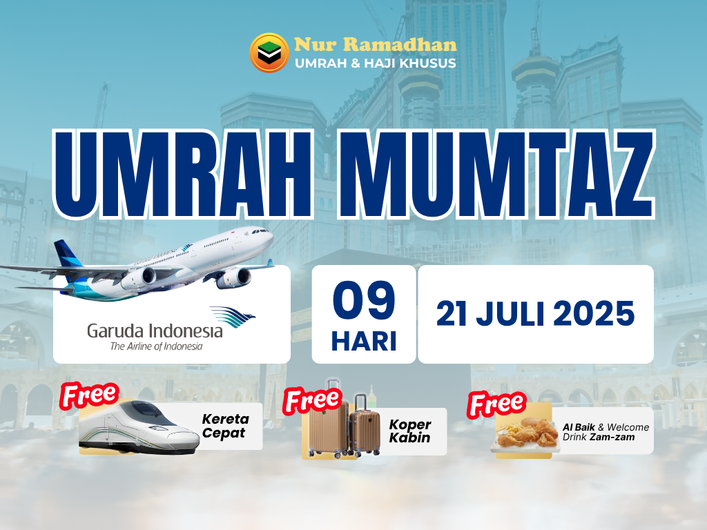 21 Juli 2025 (GA) - 9 HARI UMRAH VIP FREE KERETA CEPAT + KOPER KABIN