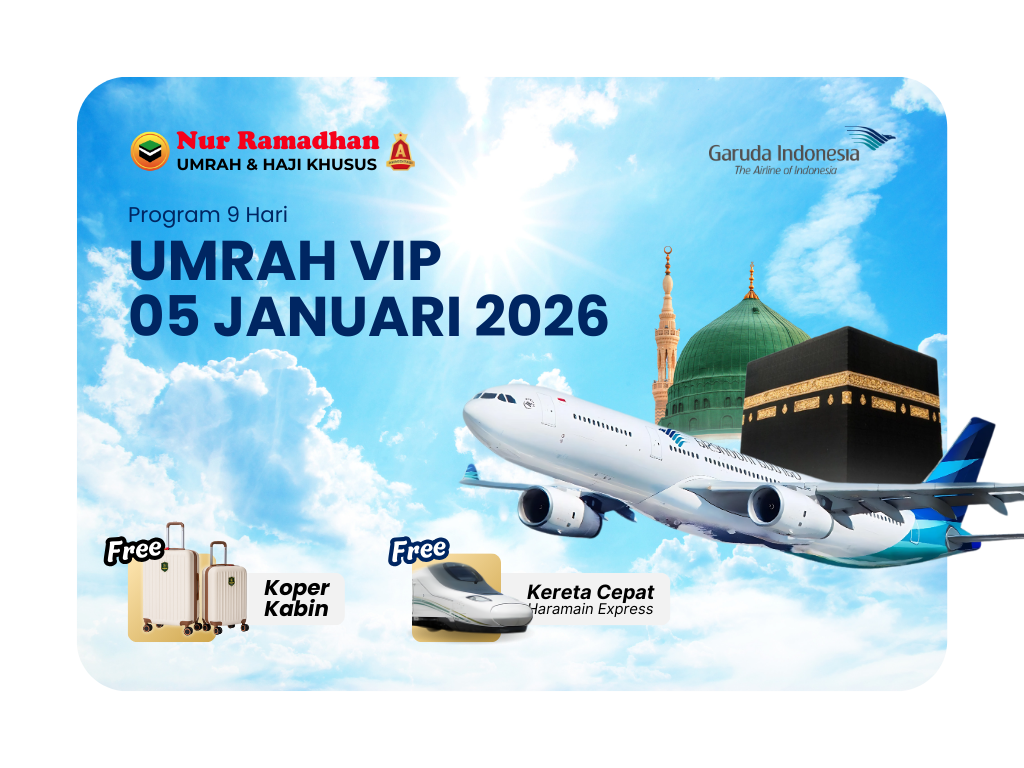 - Perlengkapan: Koper bagasi, tas paspor, tas sandal, kain ihrom (bagi laki-laki), mukena (bagi perempuan), kain seragam, buku panduan manasik, buku panduan perjalanan, do'a gantungan, pin, ID