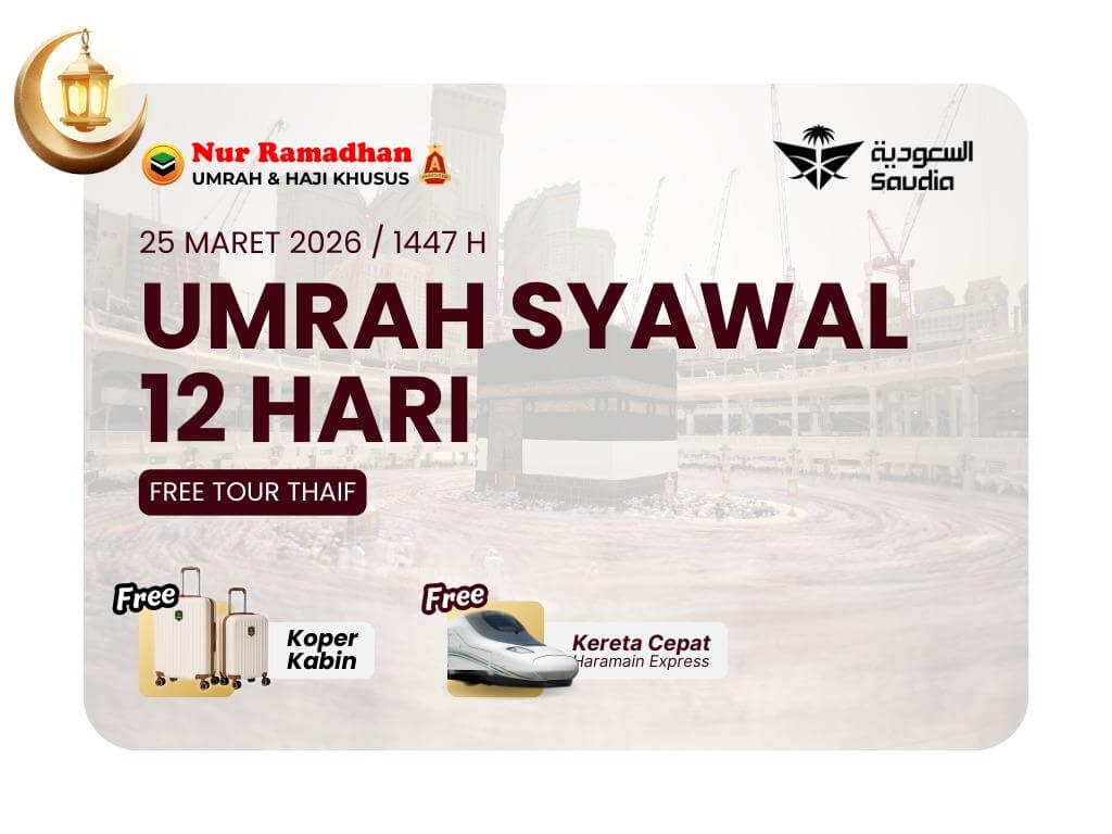 25 MARET 2026 (SV) - 12 HARI UMRAH SYAWAL FREE KERETA CEPAT + THAIF + KOPER KABIN