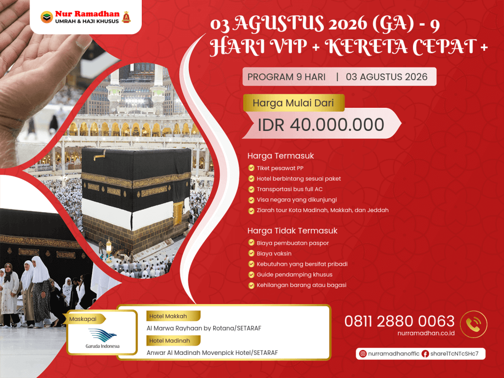 03 AGUSTUS 2026 (GA) - 9 HARI VIP + KERETA CEPAT + KOPER BAGASI