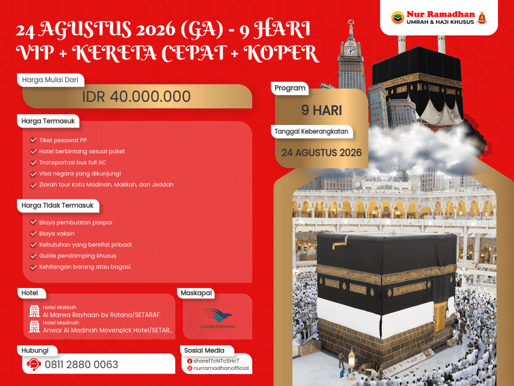 24 AGUSTUS 2026 (GA) - 9 HARI VIP + KERETA CEPAT + KOPER KABIN
