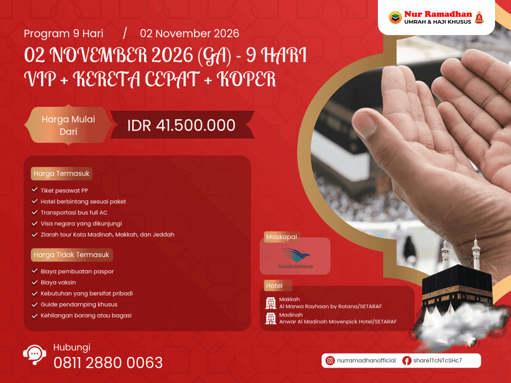 02 NOVEMBER 2026 (GA) - 9 HARI VIP + KERETA CEPAT + KOPER KABIN