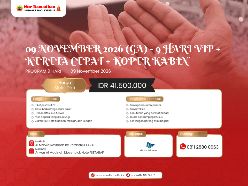 09 NOVEMBER 2026 (GA) - 9 HARI VIP + KERETA CEPAT + KOPER KABIN