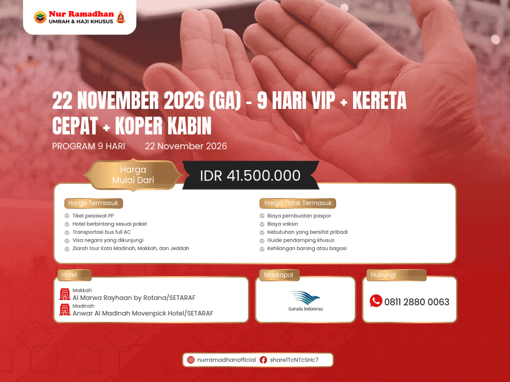 22 NOVEMBER 2026 (GA) - 9 HARI VIP + KERETA CEPAT + KOPER KABIN